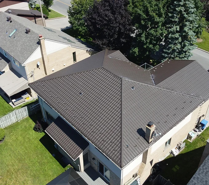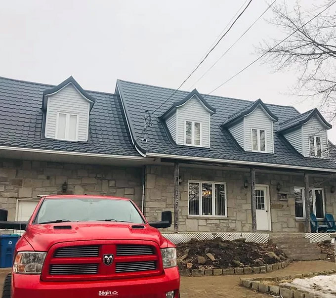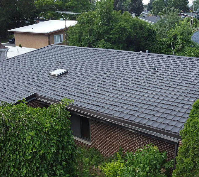 Avec une finition plus carrée que courbée, contrairement au modèle ardoise, la toiture de style californien offre un look similaire tout en facilitant l'accès pour l'entretien. Son profil épuré lui confère une esthétique moderne et dynamique. En plus de bénéficier d’une garantie de 50 ans sur les matériaux, les toitures californiennes sont également pourvues d'une peinture d'une qualité exceptionnelle, assortie d'une garantie de 40 ans. Bien que présentant des vis apparentes, leur résistance et leur durabilité les placent parmi les choix les plus fiables du marché.